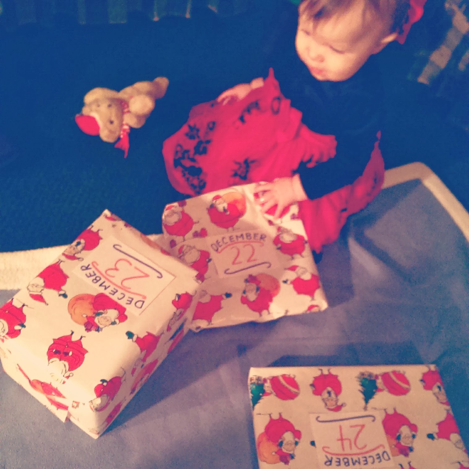 *Watching Piper slowly crawl towards all the gifts under the tree.